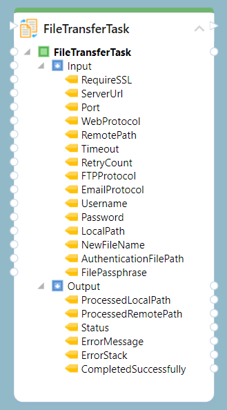 To perform an FTP task, drag-and-drop the *File Transfer* task object onto the workflow designer. Configure the object by right-clicking on the object’s header and selecting *Properties* from the context menu.