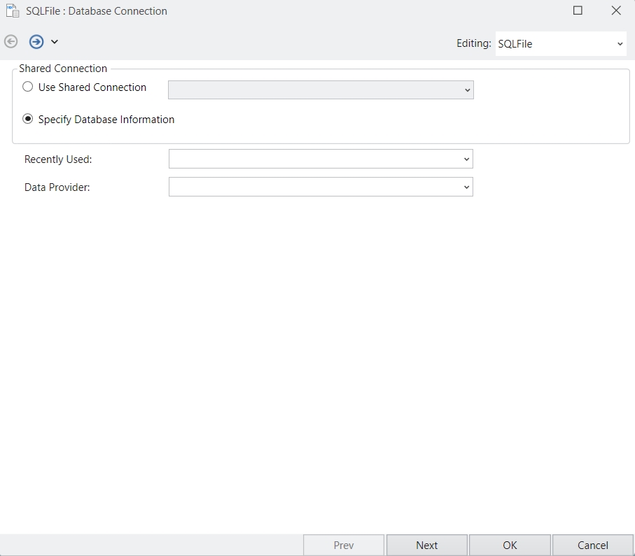 SQL File Path: Specify the path to the SQL file that you want to execute through this task.