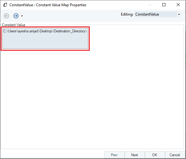 9. Paste the path of the folder where Astera will load the destination files, in the *Constant Value* box as shown below. Click *OK.*